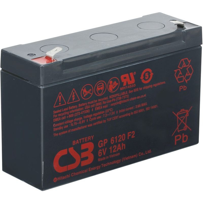 GP 6120 - батарея общего применения со сроком службы 5 лет в буферном режиме или более 260 циклов заряда-разряда в циклическом режиме при 100% разряде. Как и все батареи CSB, она перезаряжаемая, высокоэффективная и не требующая обслуживания.