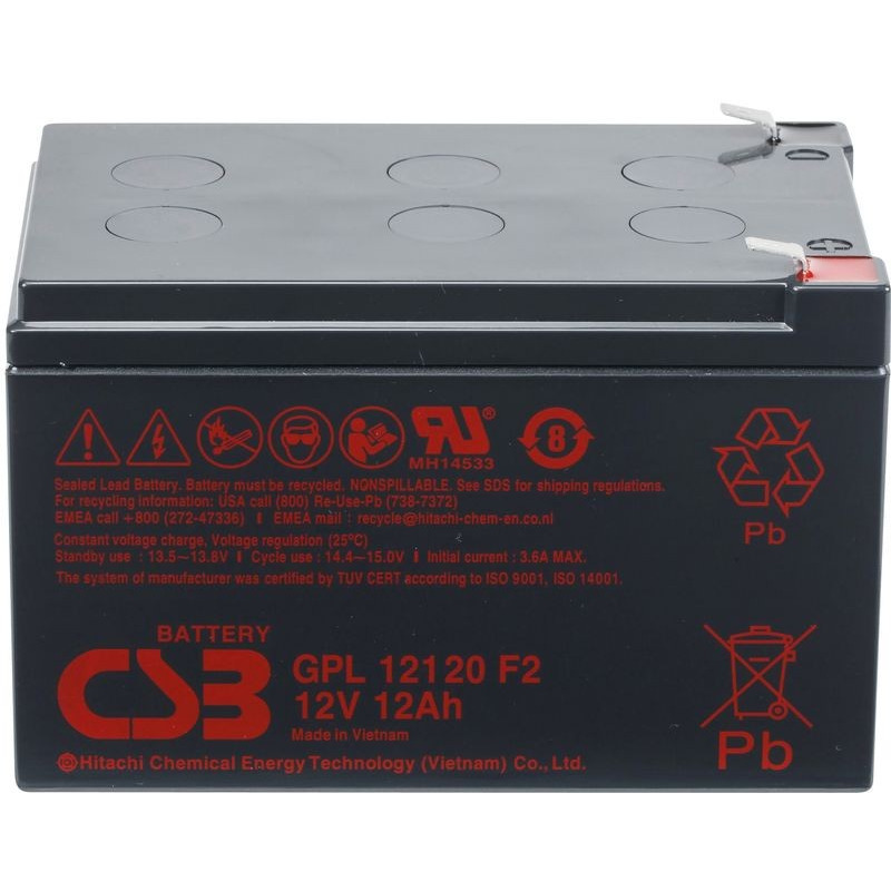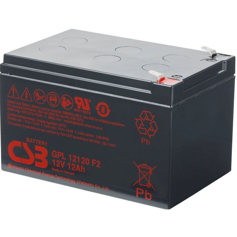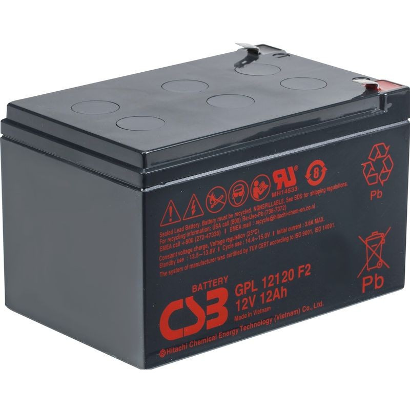 GPL 12120 - батарея общего применения со сроком службы 8 лет в буферном режиме (6-9 лет при 20°С  по классификации Eurobat) или более 260 циклов заряда-разряда в циклическом режиме при 100% разряде. Как и все батареи CSB, она перезаряжаемая, высокоэффективная и не требующая обслуживания.