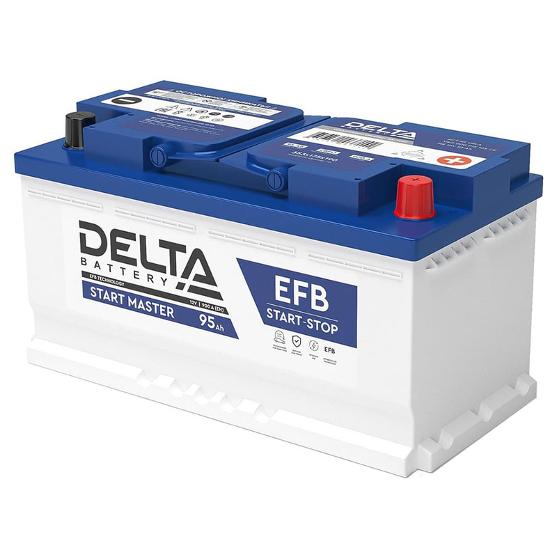 Аккумуляторы DELTA START MASTER EFB изготавливаются по технологии Enhanced Flooded Battery (усовершенствованная батарея с жидким электролитом) и предлагают удвоенную устойчивость к циклическим нагрузкам по сравнению со стандартными стартерными АКБ. Аккумулятор адаптирован для применения в автомобилях с повышенным энергопотреблением и оснащенных системой START-STOP.