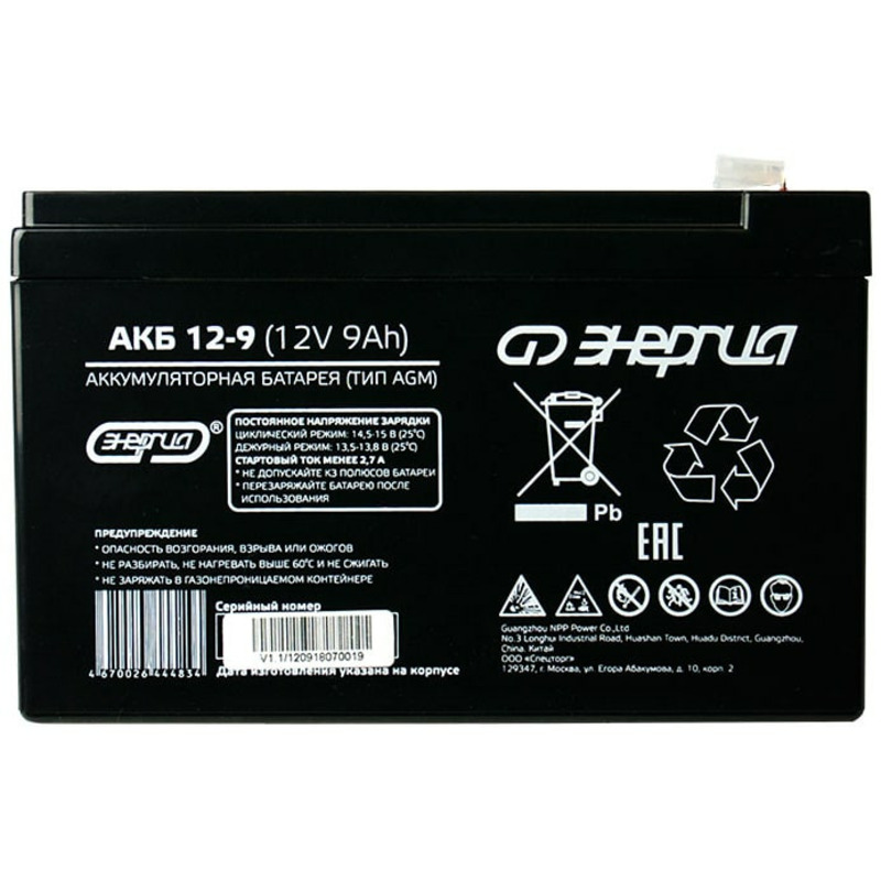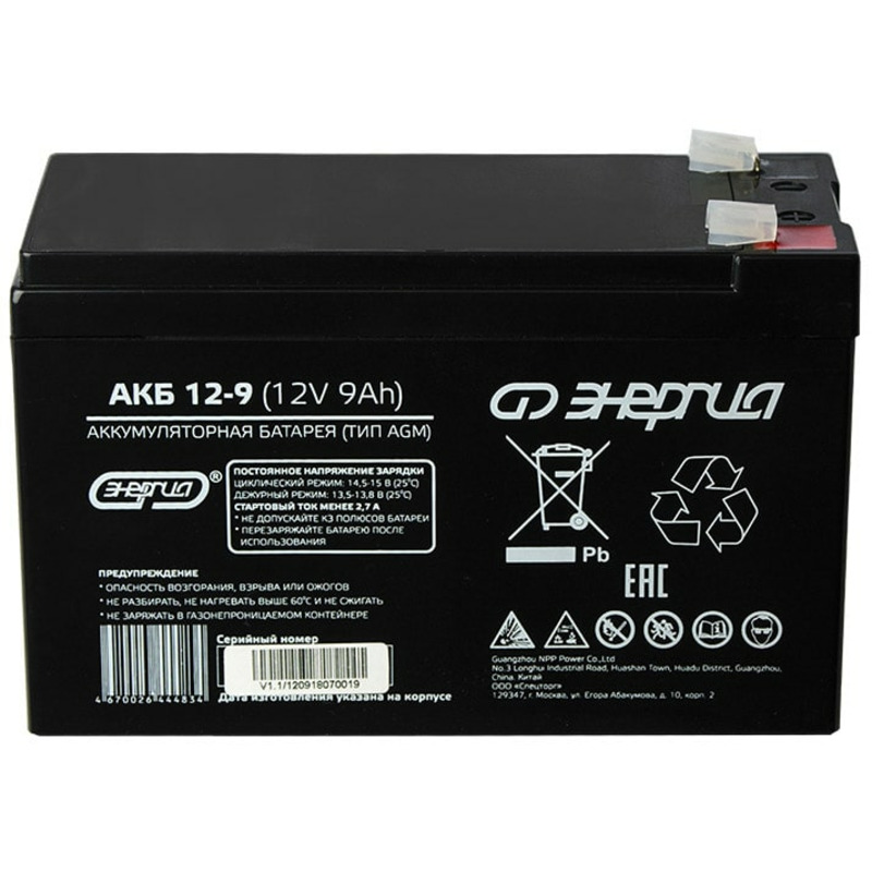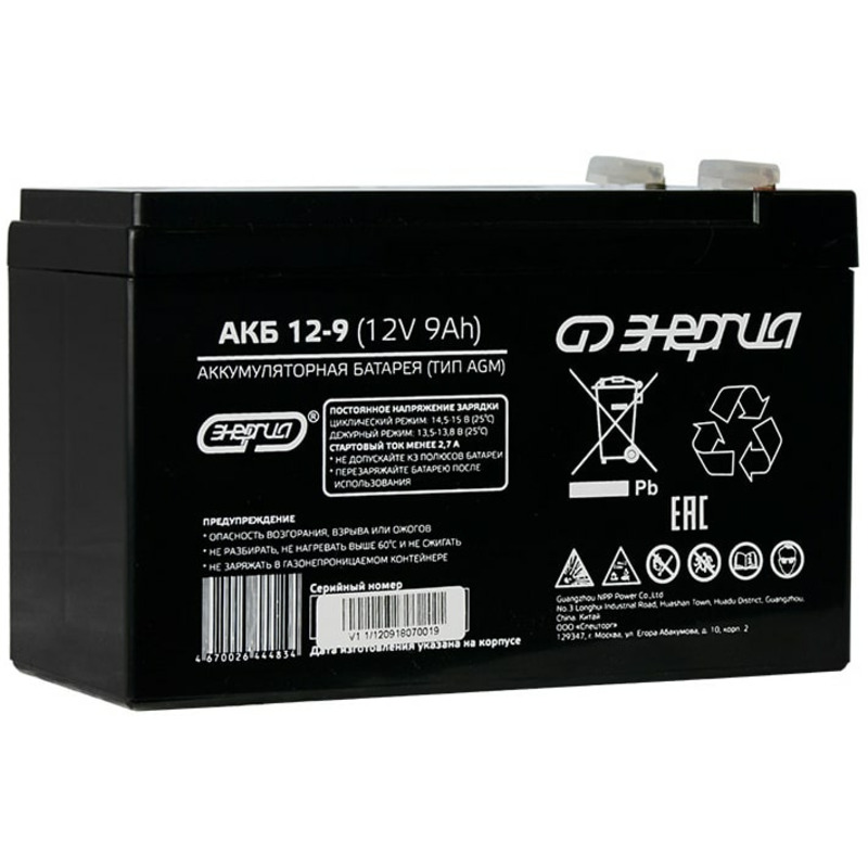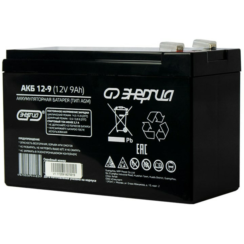 - Аккумулятор Энергия АКБ 12-9 - 1 шт.