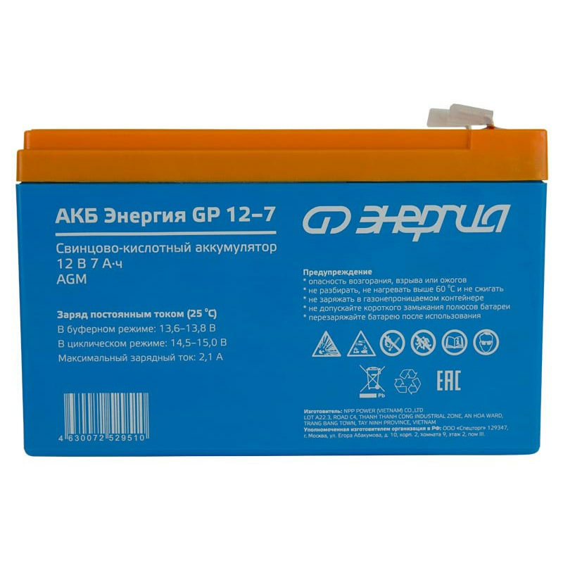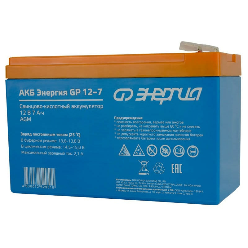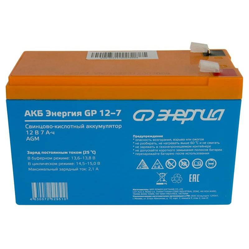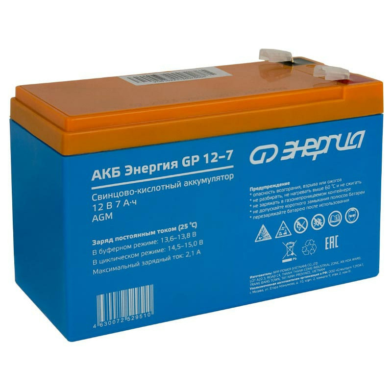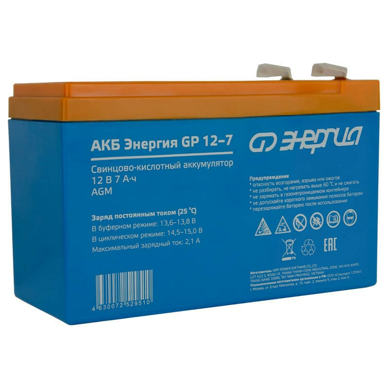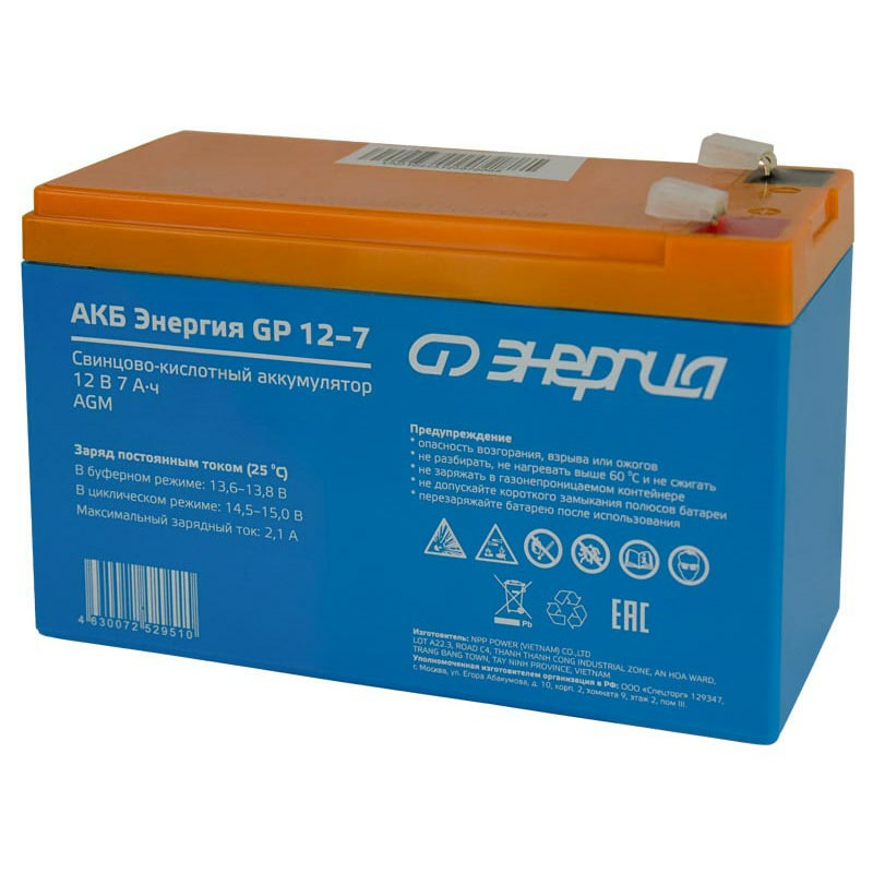 Аккумулятор Энергия АКБ GP 12-7 изготовлен по технологии AGM и предназначен для эксплуатации в буферном режиме в устройствах бесперебойного электропитания, охранной и пожарной сигнализации, информационных и телекоммуникационных системах и других типов оборудования, при работе которых не допускается перерывов в электропитании.