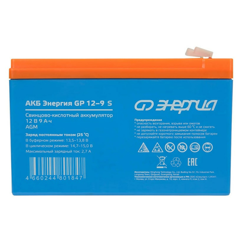 Аккумулятор Энергия GP 12-9 S изготовлен по технологии AGM и предназначен для эксплуатации в буферном режиме в устройствах бесперебойного электропитания, охранной и пожарной сигнализации, информационных и телекоммуникационных системах и других типах оборудования, при работе которых не допускается перерывов в электропитании.