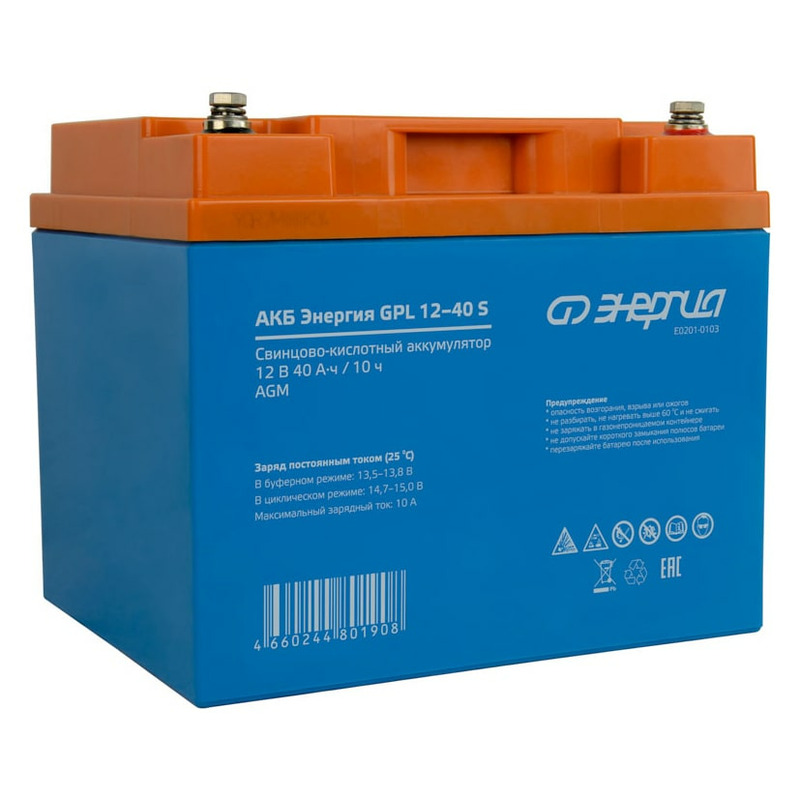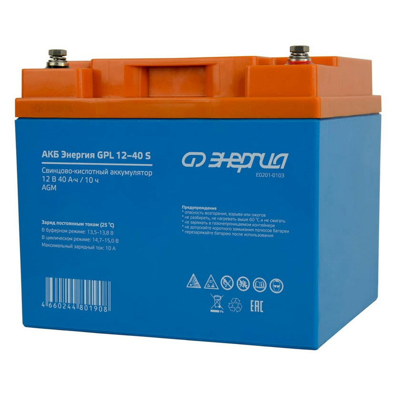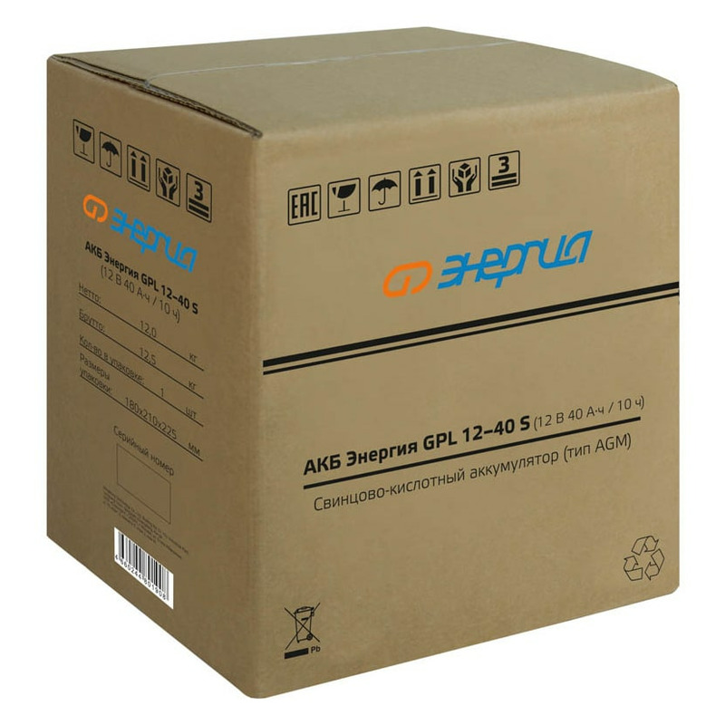 Аккумулятор Энергия GPL 12-40 S изготовлен по технологии AGM и предназначен для эксплуатации в буферном режиме в устройствах бесперебойного электропитания, охранной и пожарной сигнализации, информационных и телекоммуникационных системах и других типах оборудования, при работе которых не допускается перерывов в электропитании.