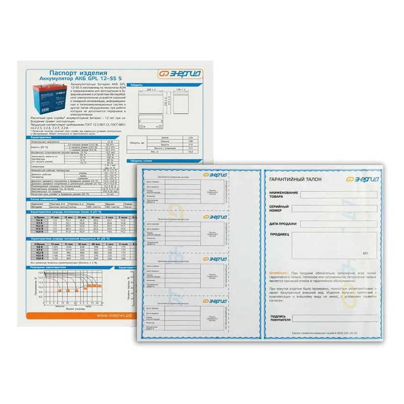 Характеристики Аккумулятор Энергия GPL 12-55 S