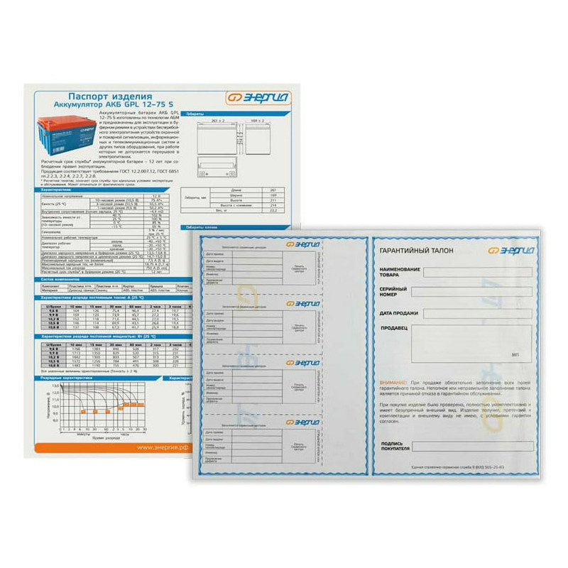 Доставка и оплата Аккумулятор Энергия GPL 12-75 S