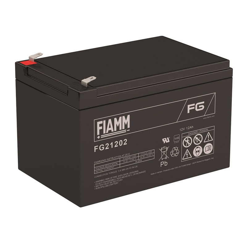 Аккумуляторы FIAMM FG (VRLA AGM) - свинцово-кислотные моноблоки емкостью от 0.8Ач до 200Ач и напряжением 6В и 12В. Серия аккумуляторов FG разработана для применения в ИБП, системах охранно-пожарной сигнализации и освещения, медицинском оборудовании и электроприборах.