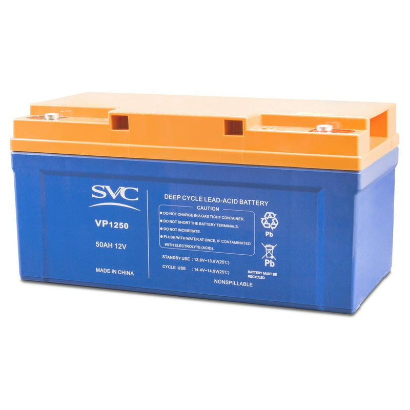 Аккумулятор SVC VP1250 - необслуживаемая батарея, не требует доливки воды, предназначена для работы в циклическом режиме (выдерживает до 600 циклов). Низкий уровень саморазрядки обеспечивает срок службы от 2 до 4 лет в резервном (буферном) режиме. Герметичная конструкция позволяет использовать батарею в любом положении. Основная сфера применения данной продукции - источники бесперебойного питания (UPS) любой мощности и конфигурации. Также данные батареи широко используются в пожарном, охранном и прочем оборудовании, требующем резервного питания. На сегодняшний день вне конкуренции по соотношению цена/качество.
