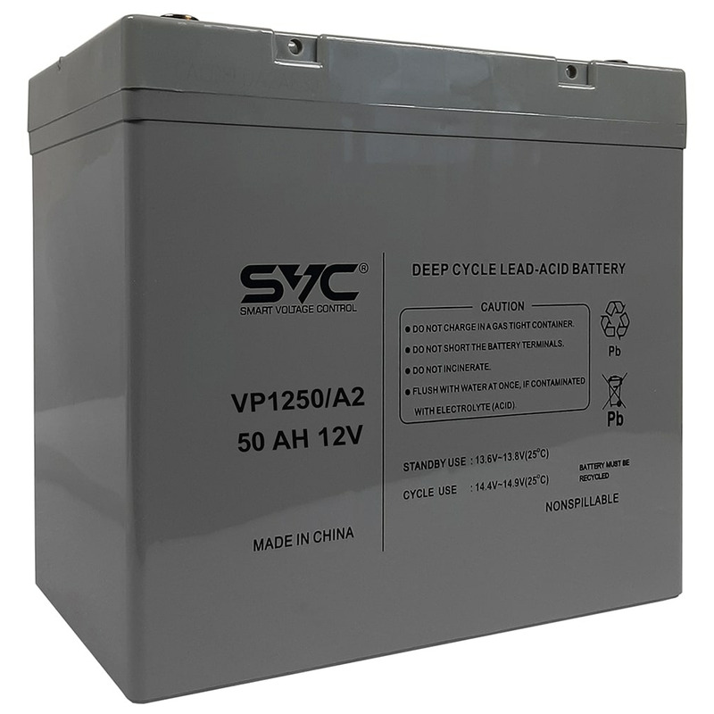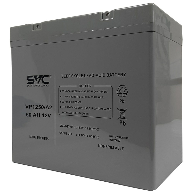 Аккумулятор SVC VP1250/A2 - необслуживаемая батарея, не требует доливки воды, предназначена для работы в циклическом режиме (выдерживает до 1200 циклов). Низкий уровень саморазрядки обеспечивает срок службы от 8 до 10 лет в резервном (буферном) режиме. Герметичная конструкция позволяет использовать батарею в любом положении. Основная сфера применения данной продукции - источники бесперебойного питания (UPS) любой мощности и конфигурации. Также данные батареи широко используются в пожарном, охранном и прочем оборудовании, требующем резервного питания. На сегодняшний день вне конкуренции по соотношению цена/качество.