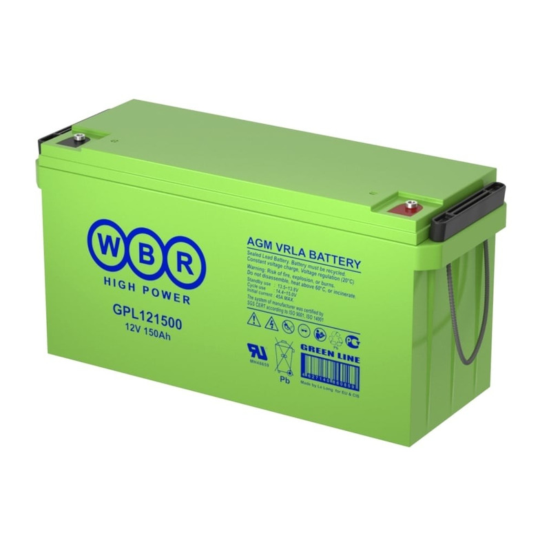 Аккумуляторные батареи WBR серии GPL - батареи общего применения c увеличенным сроком службы в буферном режиме по сравнению с серией GP до 12 лет при температуре 25 °С. Эти батареи предназначены для длительной эксплуатации в источниках бесперебойного питания систем телекоммуникации и связи, другом оборудовании и могут использоваться как в буферном, так и в циклическом режимах.