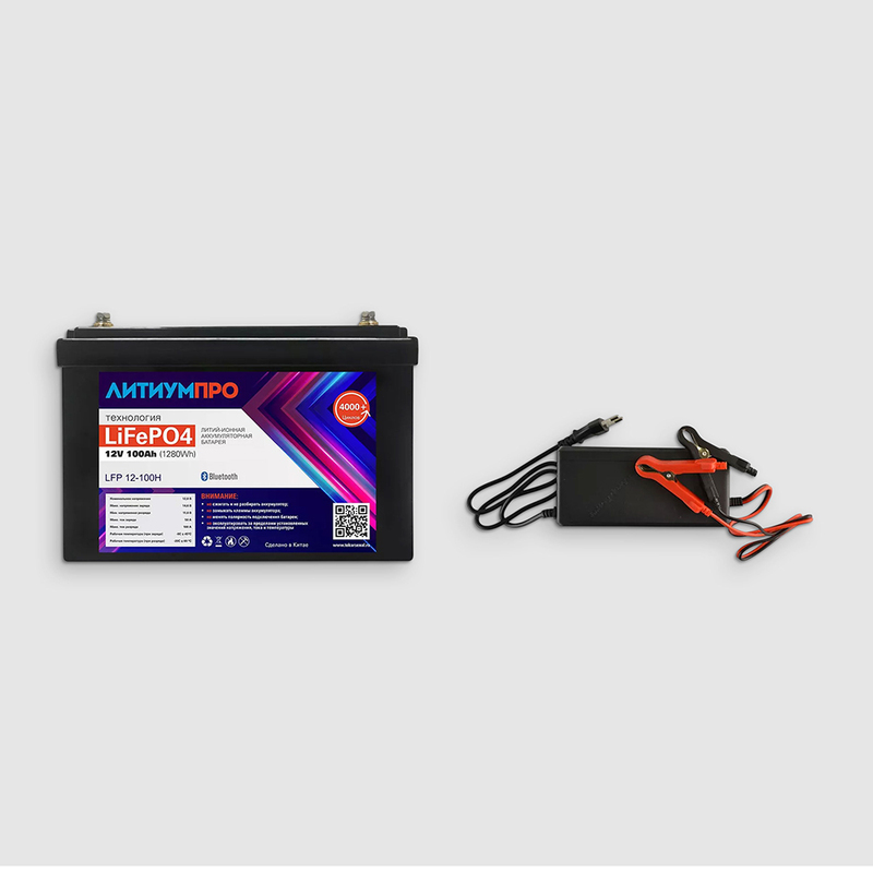 Комплект АКБ LFP ЛИТИУМПРО 12В, 100Ач, JBD bluetooth bms, ЗУ 10А