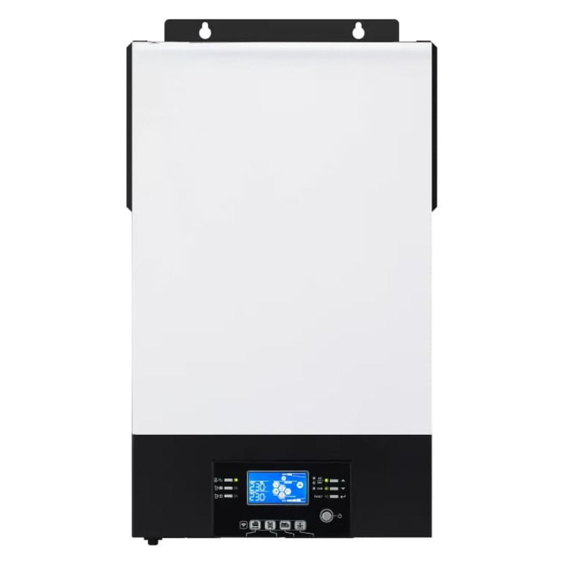 В основу взят многофункциональный инвертор ADION AXPERT KING II 6kW TWIN-B со встроенным контроллером MPPT. Обладает чистым синусоидальным выходным сигналом, который позволит обеспечивать электроэнергией небольшой загородный дом или дачу, за исключением мощных водонагревателей и электропечей. Очень удобен в использовании в режиме ИБП + солнечные батареи.