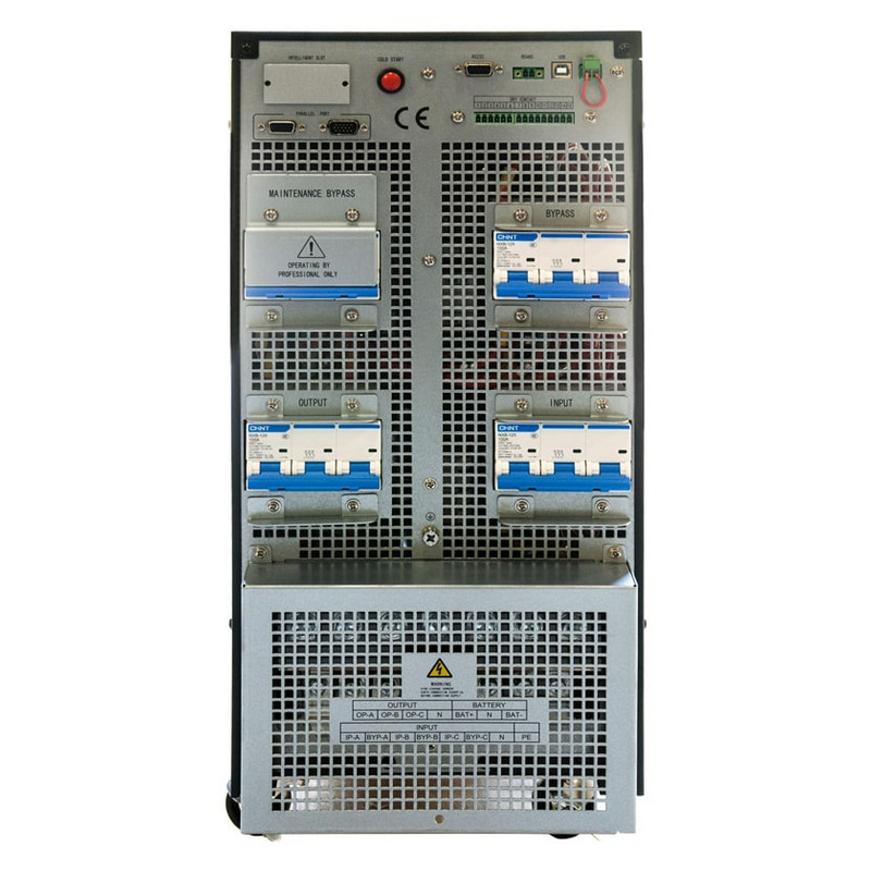 - Интерфейс RS-232, RS-485, USB, EPO, «сухие» контакты, плата параллельной работы, слот (SNMP, Modbus, Wi-Fi)