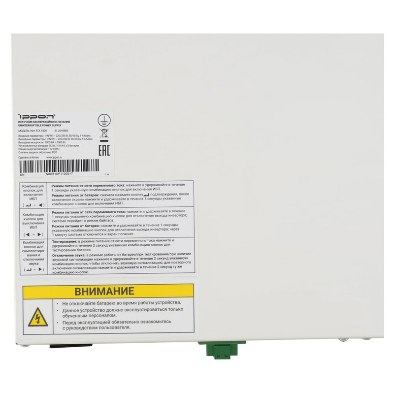Характеристики ИБП Ippon Na+ RTA 1000