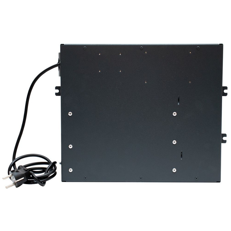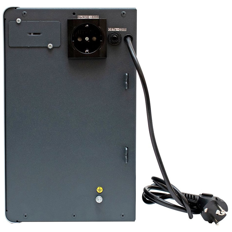 Нагрузка подключается в евророзетку, установленную на боковой панели ИБП. К входной сети устройство подсоединяется с помощью шнура с евровилкой.