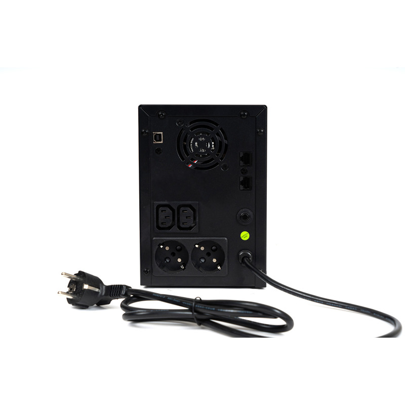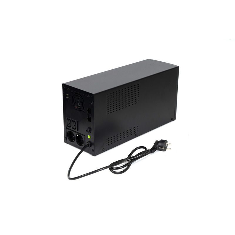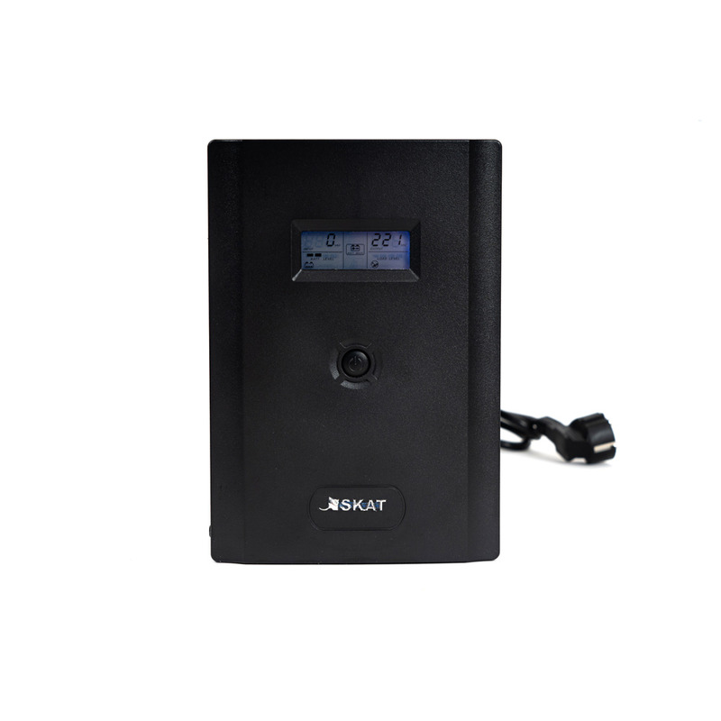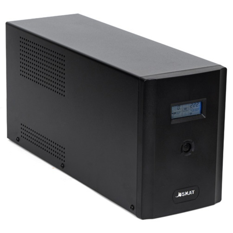 ИБП SKAT-UPS 3000/1800 - 220 В, 3000 ВА, (1800 Вт), встроенный АКБ 9 Ач, 4 шт, время резерва 2 мин., холодный старт, модифицированый синус, световая и звуковая индикация режимов работы, графический дисплей режимов работы связь и управление ПК по USB. Встроенный стабилизатор (диапазон сети 162—290 В), защита от всплесков напряжения, защита от перегрузки. 4 выходных разъема: 2 шт. IEC 320 C13 (компьютерный), 2 шт. CEE 7/4 (розетка с заземлением)