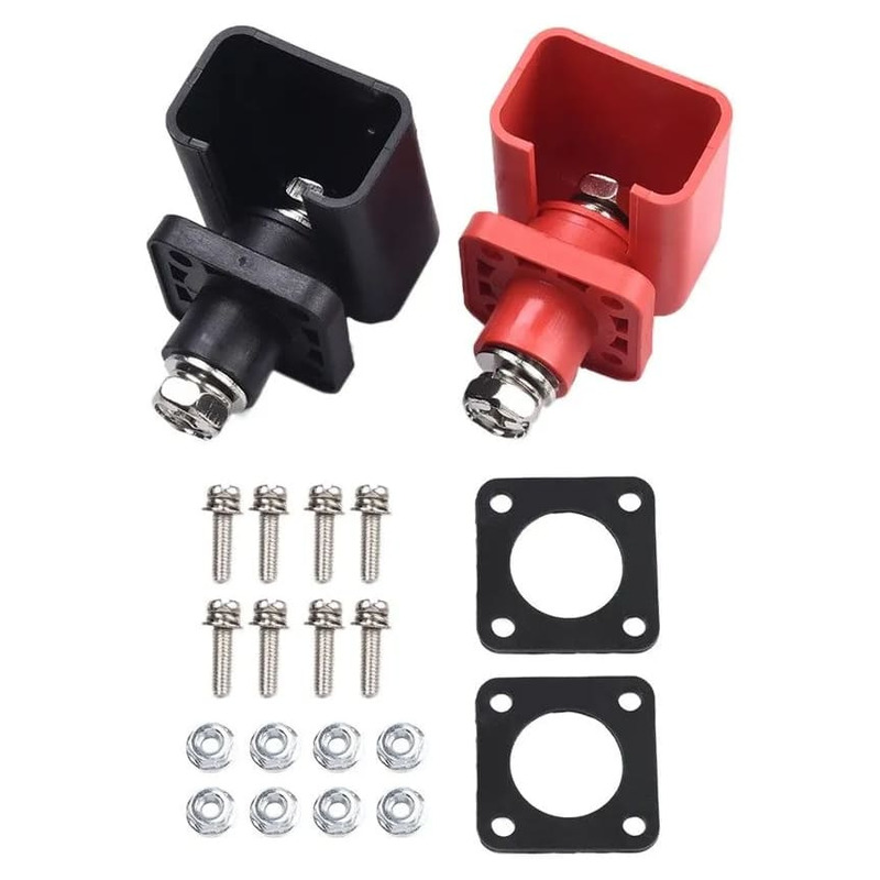 Клеммы для LFP-аккумулятора 200А, 1000В (пара красн+черн) используются для соединения аккумуляторов с потребителями, а также для подключения зарядных устройств. Корпус разъема изготовлен из высокопрочного пластика, препятствует попаданию пыли и масел.