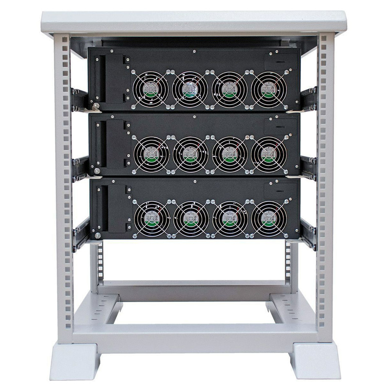 Стабилизаторы IS10000RT установлены в металлической двухрамной стойке высотой 12U, предназначенной для открытого и компактного размещения специализированной техники стандарта 19 дюймов. Также устройства могут устанавливаться вертикально на ровной горизонтальной поверхности с помощью специальных упоров. Все детали для крепления входят в комплект поставки устройства.