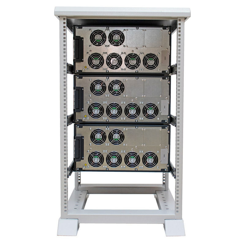 Стабилизаторы IS12000RT установлены в металлической двухрамной стойке высотой 18U, предназначенной для открытого и компактного размещения специализированной техники стандарта 19 дюймов. Также устройства могут устанавливаться вертикально на ровной горизонтальной поверхности с помощью специальных упоров. Все детали для крепления входят в комплект поставки устройства.