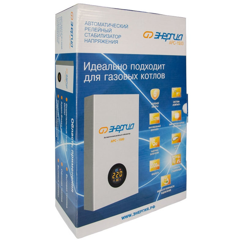 Характеристики Стабилизатор напряжения Энергия АРС-1500