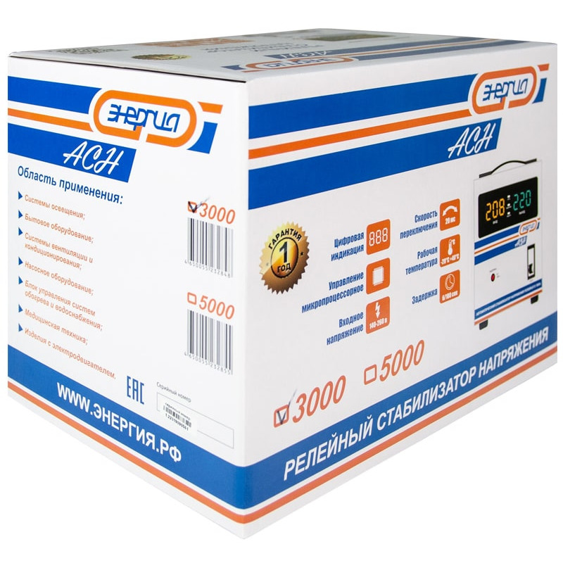 - Однофазный стабилизатор напряжения Энергия АСН-3000 - 1 шт.