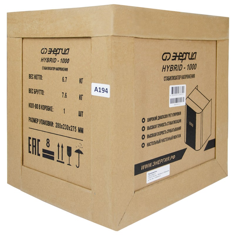 Стабилизатор напряжения Энергия Hybrid 1000 Е0101-0145 поставляется взамен снятого с производства Стабилизатора напряжения Энергия Hybrid СНВТ-1000/1 Е0101-0090.