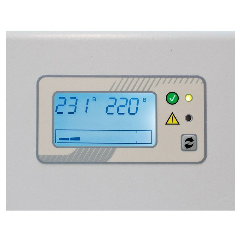 - электронный байпас срабатывает автоматически при выходе из строя внутренних узлов стабилизатора или его перегрузке (данный функционал будет особенно полезен, если требуется запустить нагрузку с мощным пусковым током);