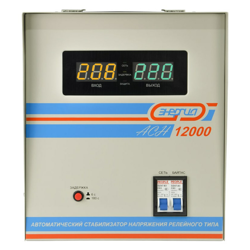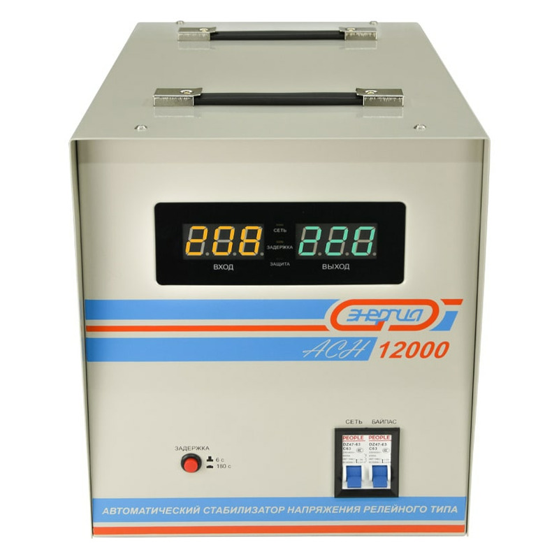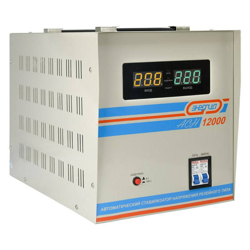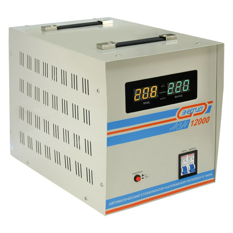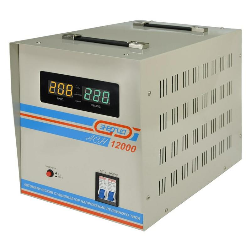 Релейный однофазный стабилизатор напряжения переменного тока предназначен для стабилизации переменного напряжения в сети электроснабжения для потребителей бытового и аналогичного назначения. Изделие относится к классу автотрансформаторных стабилизаторов со ступенчатым регулированием напряжения путем переключения отводов силового автотрансформатора с помощью электромеханических силовых реле, таким образом стабилизаторы Энергия АСН регулируют напряжение по релейному принципу.