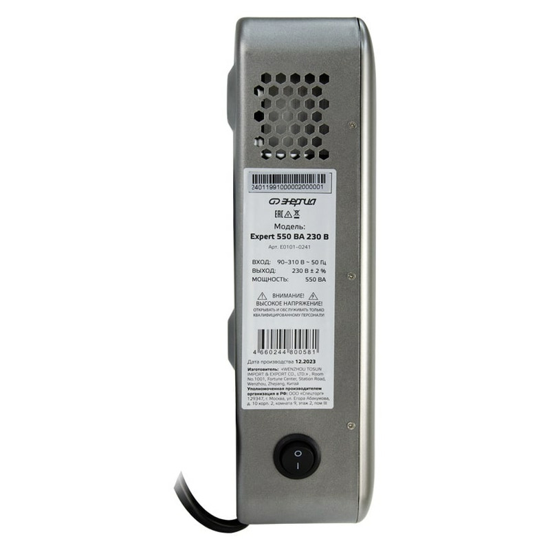 Характеристики Стабилизатор напряжения Энергия Expert 550 230В Е0101–0241