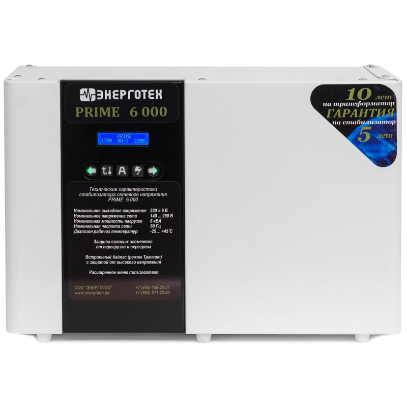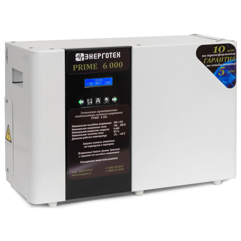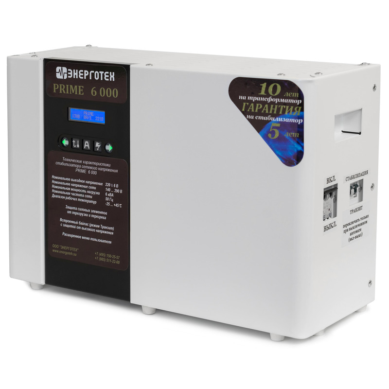 Характеристики Стабилизатор напряжения Энерготех PRIME 6000
