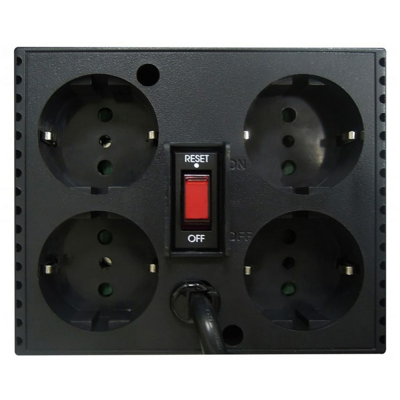 Бытовые стабилизаторы напряжения серии ТСА обеспечивают надежную работу компьютерной и прочей электронной техники при понижении или повышении напряжения электросети там, где не требуется батарейная поддержка. Компактный корпус стабилизатора вмещает 4 выходные евророзетки с заземлением (4 x CEE 7/4) на задней панели с защитой от проникновения посторонних предметов и надежной фиксацией вилок любых типов. Для защиты от перегрузки и короткого замыкания на выходе предусмотрен автоматический выключатель. После устранения причины проблемы выключатель легко возвращается в исходное состояние одним нажатием.